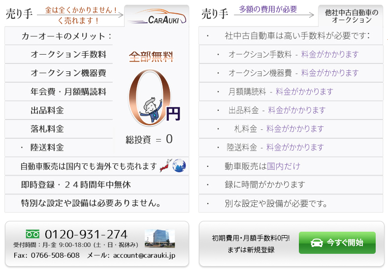 カーオーキはオンラインで売り手と買い手を直接結び付けるので、仲介料や手数料をいただきません。
